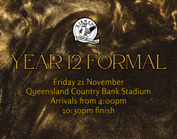 Our Year 12 Formal is on Friday 21 November at Queensland Country Bank Stadium.